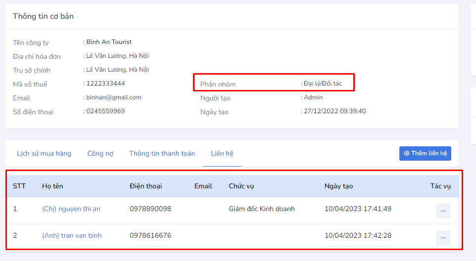 * Danh sách CONTACT chính là: Người đặt dịch vụ, Cộng tác viên, Đầu mối liên hệ của Khách hang doanh nghiệp, đầu mối liên hệ của Đại lý/Đối tác